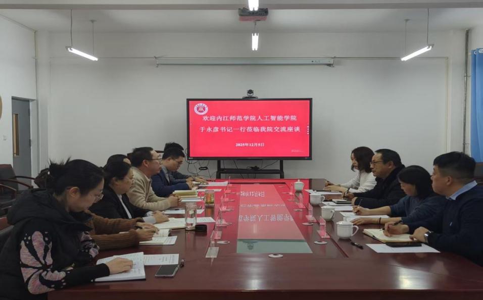 为深化校际合作、共探人才培养新路径,2025年12月5日,内江师范学院人工智能学院党委书记于永彦一行到访我院,参加交流座谈会。会议由计算机与网络工程学院党委书记马云波主持。