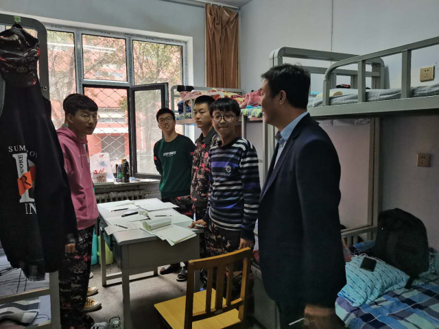 在学生宿舍,各位领导仔细查看了宿舍的环境设施,认真询问了同学们的家庭情况和目前在校的生活情况,并叮嘱新生之间要加强交流,互相帮助,尽快适应大学生活环境,尽早对未来四年的大学生活做好规划。看到同学们在撰写安全教育学习心得体会,葛振斌书记再次强调大家要在消防安全、电信诈骗等方面树立高度的警觉性,要牢记冯锋校长开学典礼上的讲话:“不要让抖音抖掉了青春,不要让网络游戏游戏了自己,更不要让‘校园贷’带走了未来”。葛书记还强调宿舍是大家四年生活的地方,要注意宿舍文化建设,可以适当地对宿舍进行一些软装饰,过得“讲究一点”。宋晓霞院长与同学们亲切交流,询问了同学们在计算机方面的兴趣、对计算机专业的了解程度及对未来的规划。当看到宿舍同学围在桌前学习英语,为英语四六级和考研做准备时,她对同学们的学习精神高度赞扬,并叮嘱同学们要牢记弓永华书记为新生讲思政第一课时提到的“六个心”,保持敬畏、心怀感恩、树立自信、勇担责任、潜心求学、积极进取,在勤奋读书的同时增长实干技能,全面发展争做时代新青年。