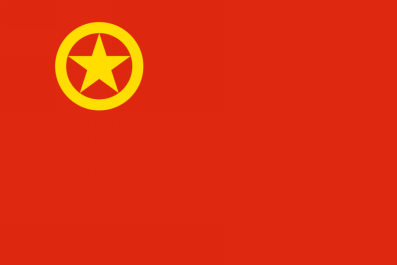 2.制作方法是:黄圈围着的黄色五角星,缀在旗面左上方,制旗时,先将旗面对分为4个相等的长方形,将左(它的反面为右)上角长方形上下分为12等份,再以左上角长方形中心点为圆心,3等份及4等份长为半径画两圆周,两圆周之间就是黄色圆圈。再在内圆周上定出5个等距离的点,其中一点位于圆周正上方。将此5点中各相隔的两点相联成直线,此5直线之外轮廓线就是黄色五角星的外缘。