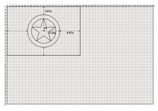 团旗尺寸坐标图(按与通用规格边长最小尺寸1:2的比例)