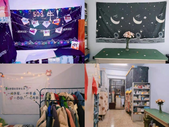 “这还是我的那个新一南xxx?怎么看起来好温馨……”。同学们的宿舍设计各具特色,有的凸显了浓厚的文学气息,有的展现了室友的团结友爱,有的展示了青春飞扬的主题。集体的智慧、家人的温暖,一间间宿舍在同学们的装扮下,整洁清新。